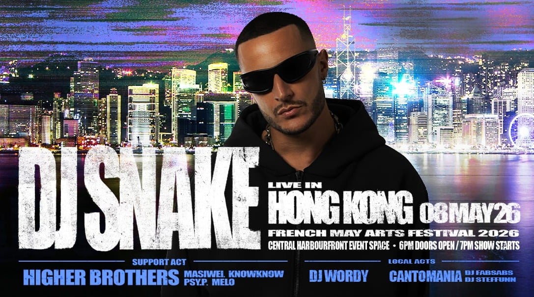 French superstar DJ Snake makes his highly anticipated Hong Kong debut as the headline act of the French May Arts Festival’s inaugural Sino-French Electronic Music Show. Joining him are Chinese hip-hop group Higher Brothers (Masiwei, KnowKnow, PSY.P and Melo), three-time DMC China Champion DJ Wordy, and local collective Cantomania (DJ Fabsabs & DJ Steffunn).