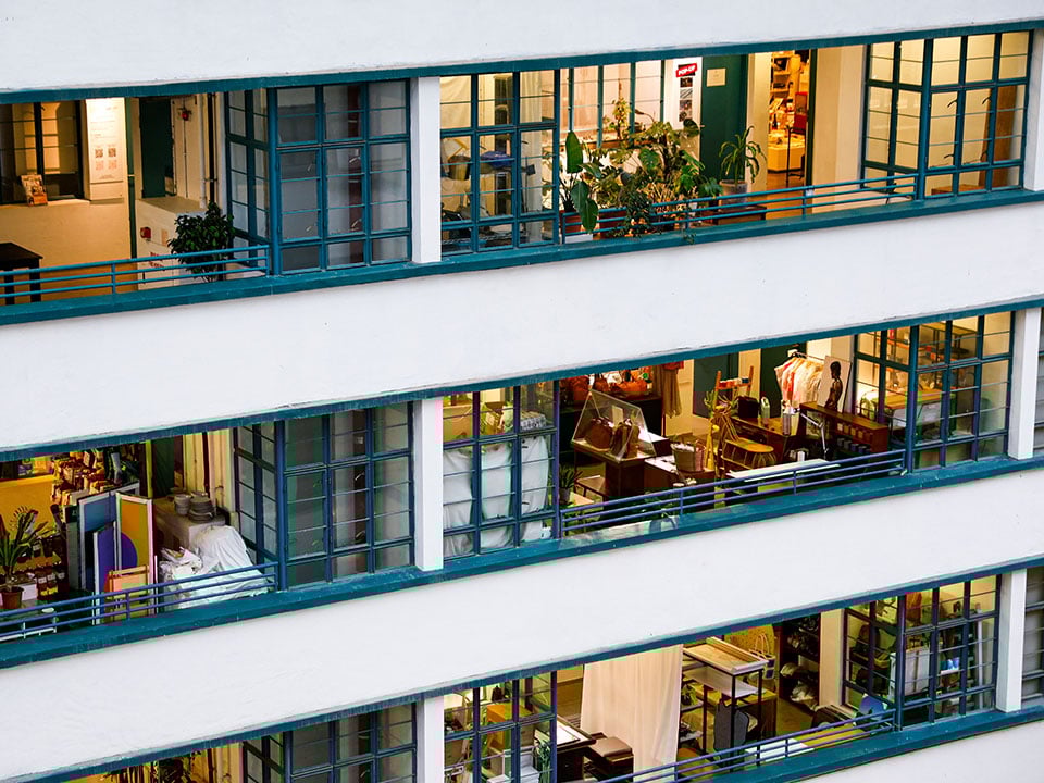 During the renovation process between 2012 and 2014, many original details were preserved, including the distinctive staircases and the overall layout, to maintain a sense of history while integrating modern design elements. The architecture of PMQ reflects the Modernist style prevalent in the mid-20th century: two blocks arranged in a U-shape, designed to facilitate airflow and natural light, while the façade features a combination of brick and concrete, with large windows to enhance the sense of openness. The housing units were transformed to house creative studios, shops, and workshops.